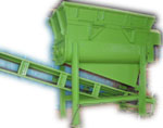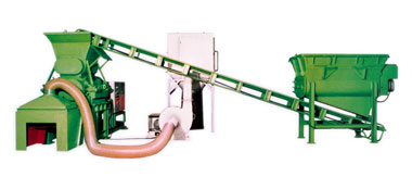 ●ローターの回転により生ずる風圧でスクリーンを通過した破砕品はスクリューコンベアで機外に排出されます。